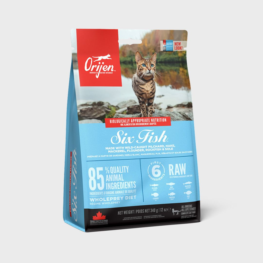 오리젠 6피쉬는 어류 단백질과 오메가 지방산을 극대화한 프리미엄 그레인프리 사료입니다. 단백질 40%·지방 19%의 고영양 레시피에 DHA·EPA가 풍부하여, 피부와 피모 관리가 필요한 고양이, 해산물 기호성이 높은 고양이에게 이상적입니다.